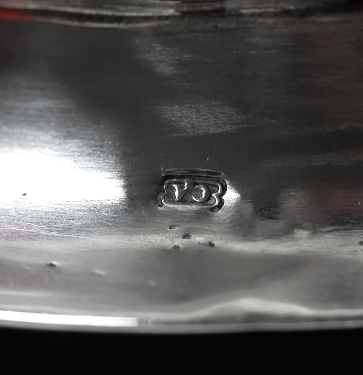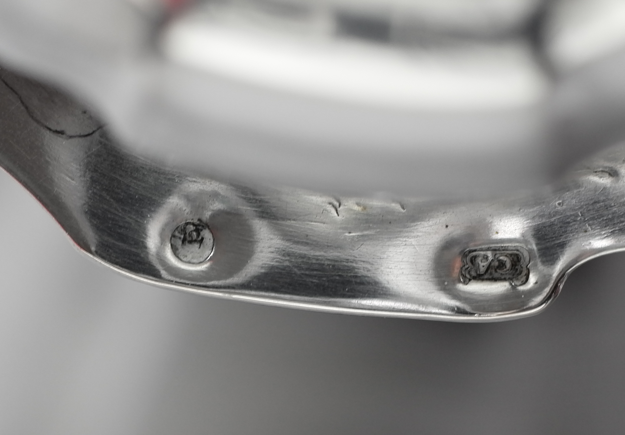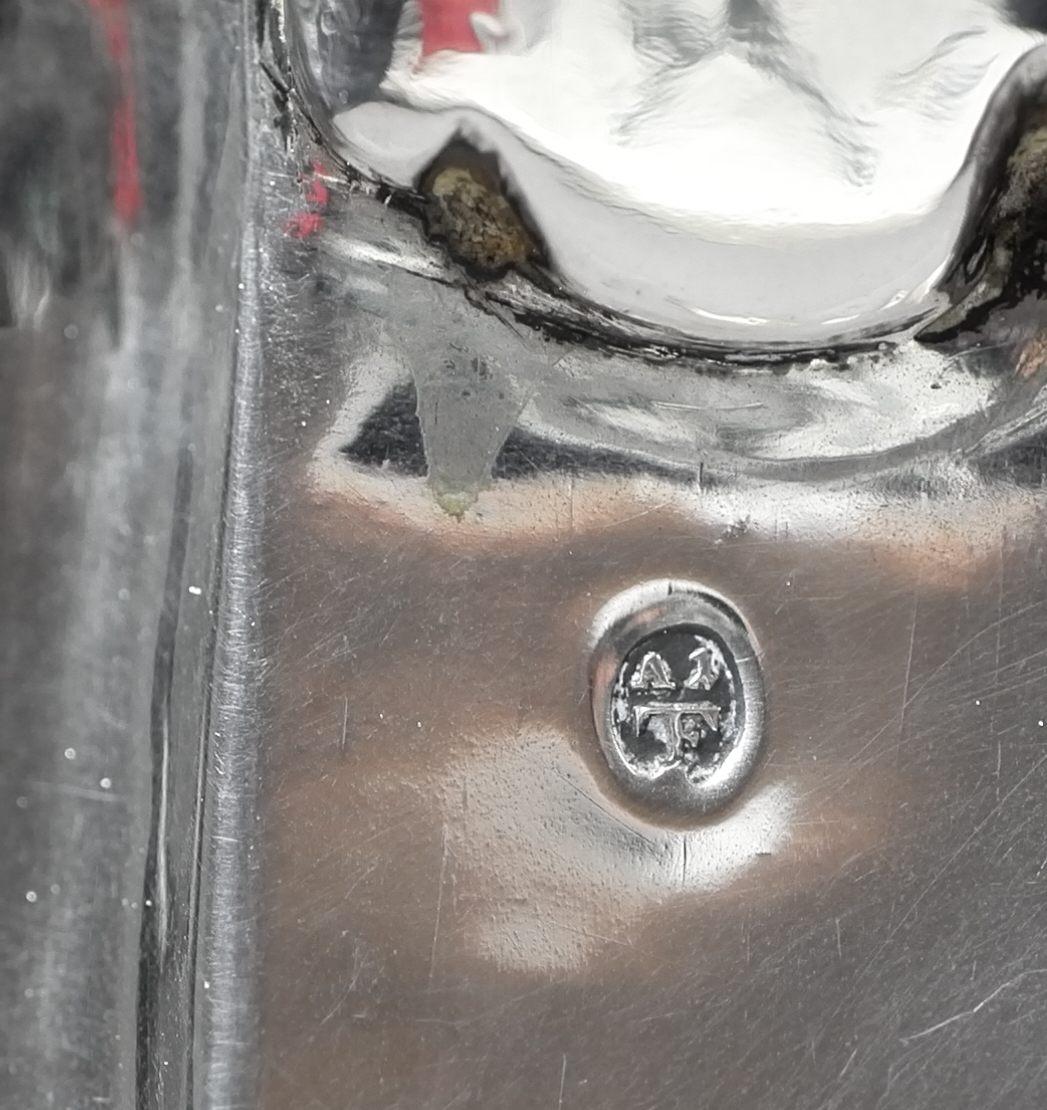 Gepunzt ist das Kännchen mit der österreichischen Radmarke mit der Jahreszahl 1730 sowie der Meistermarke MGH für Mathias Georg Hochlehner.