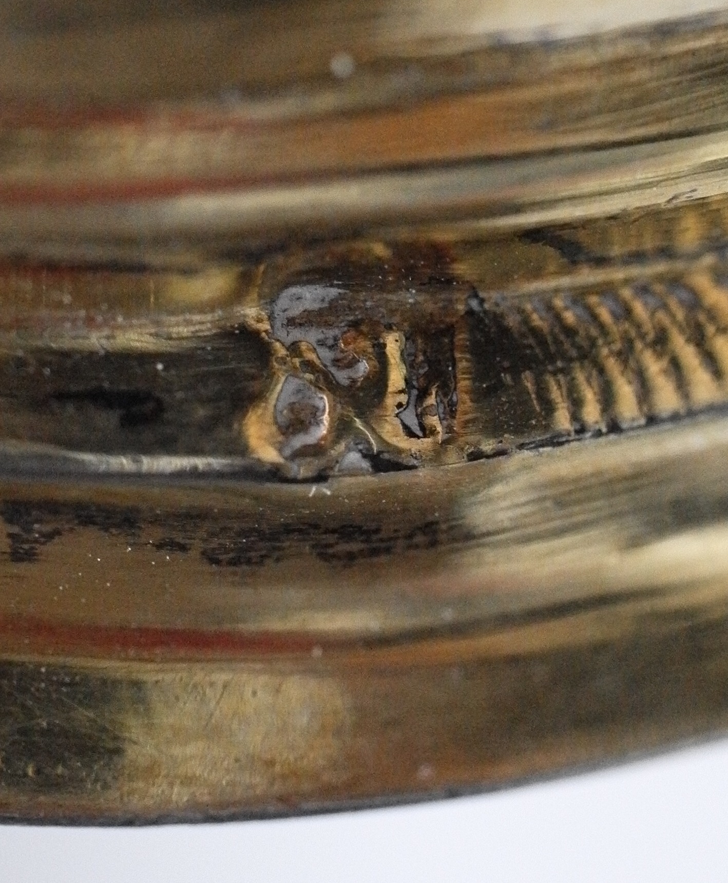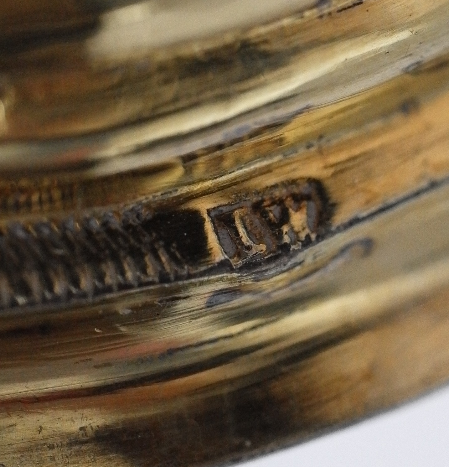 Gepunzt ist die Monstranz mit einem linksschreitenden Löwen sowie den Initialen iW, die vermutlich für den Meister stehen.