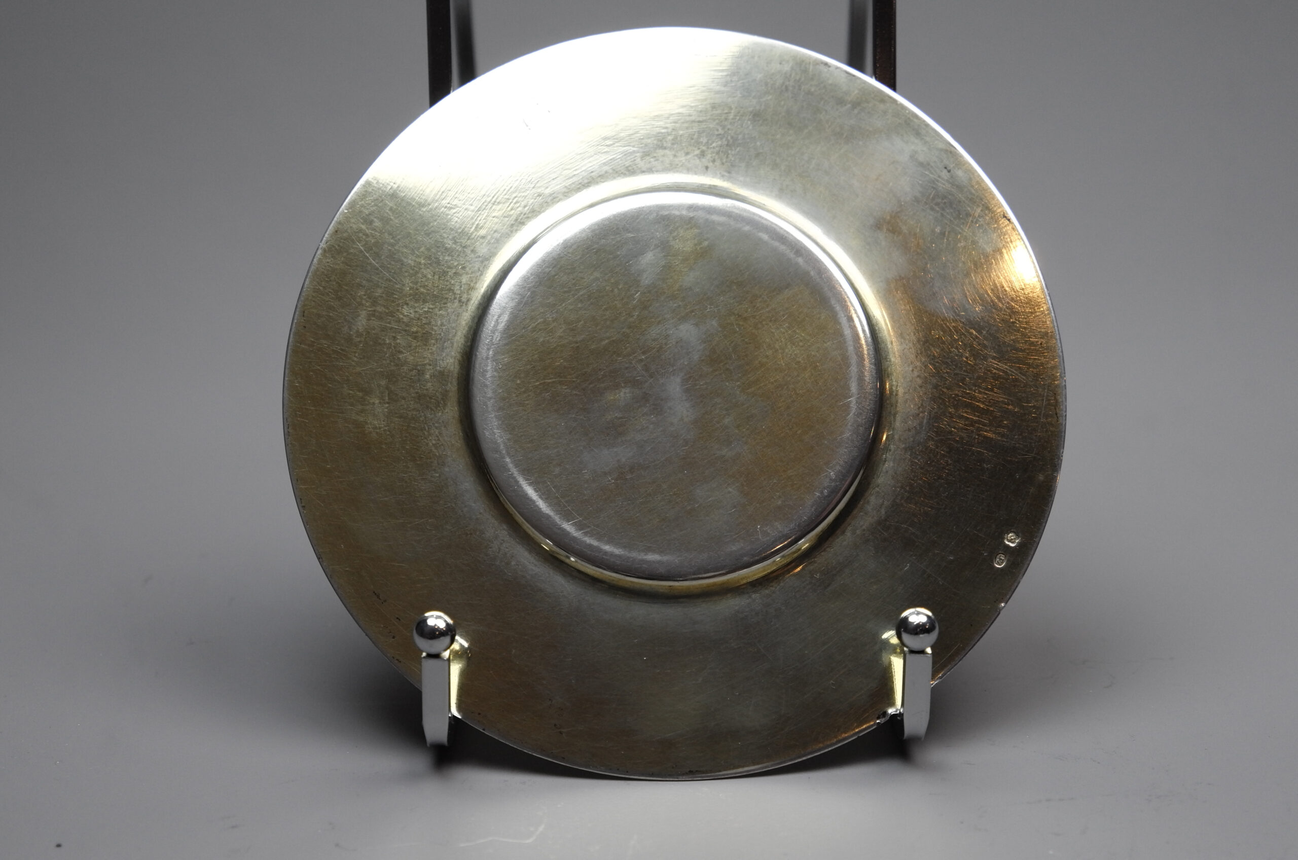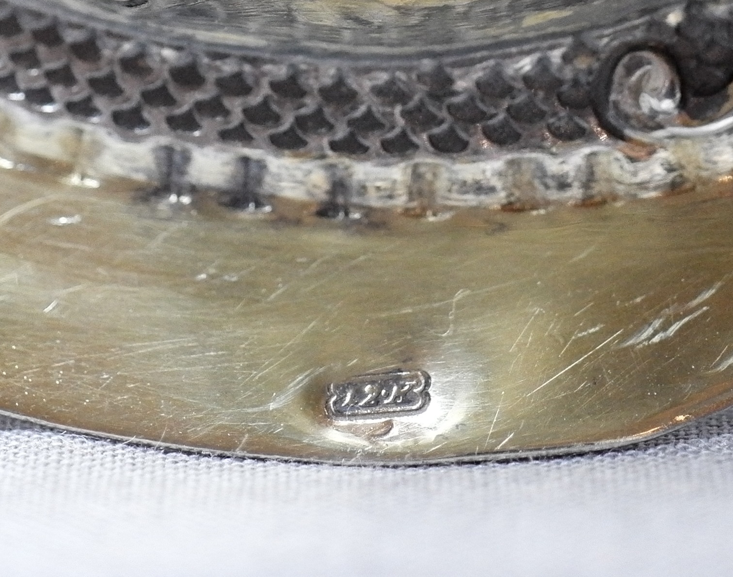 Die beigegebene Patene ist ca. 185 g schwer und hat einen Durchmesser von ca. 7,0 cm. Sie wurde in 800er Silber im 19. Jahrhundert in Wien gefertigt