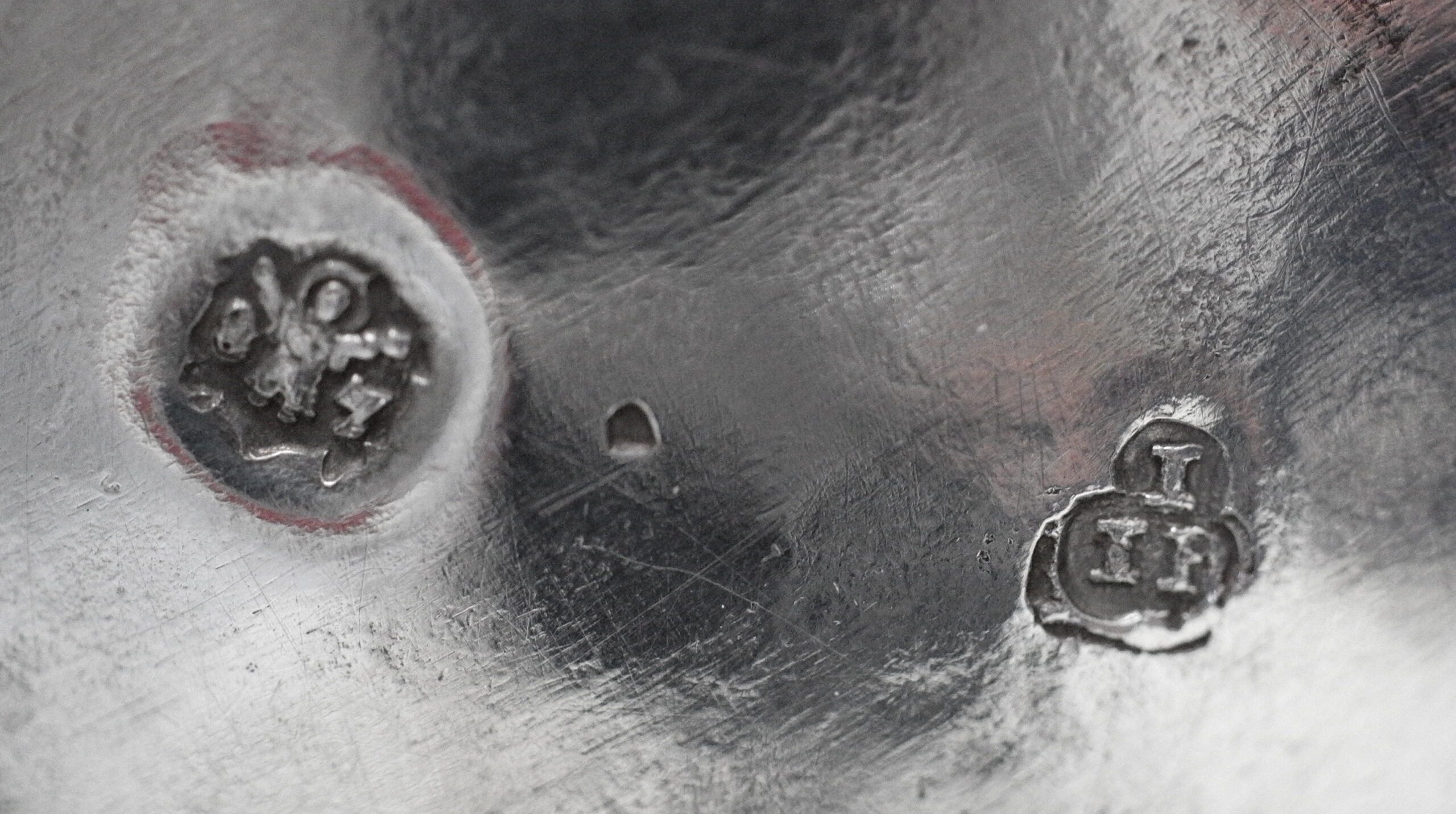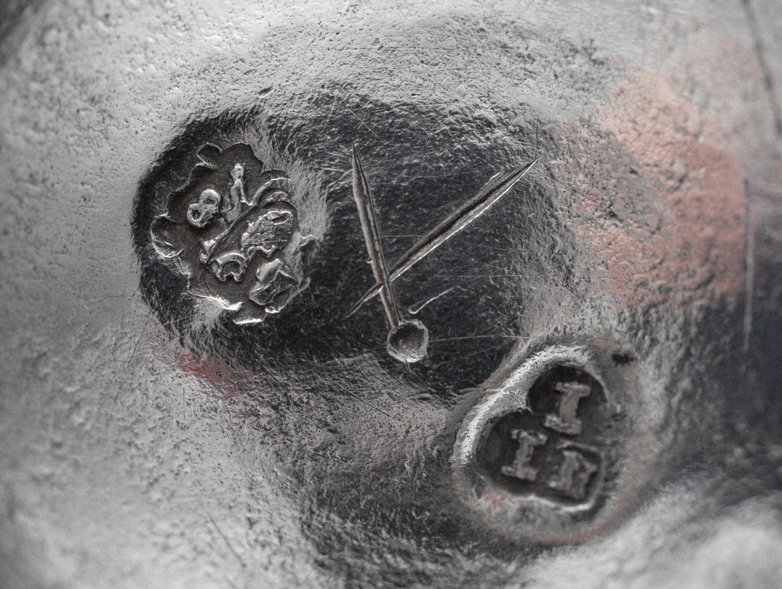 An Punzen sind zu finden das Beschauzeichen von München (Münchner Kindl) mit 87 für das Jahr 1787 sowie die Initialen I über IF für den aus Prag stammenden Ignaz Franzowitz oder Francowiz, der 1765 zum Meister ernannt wurde und 1808 verstarb.