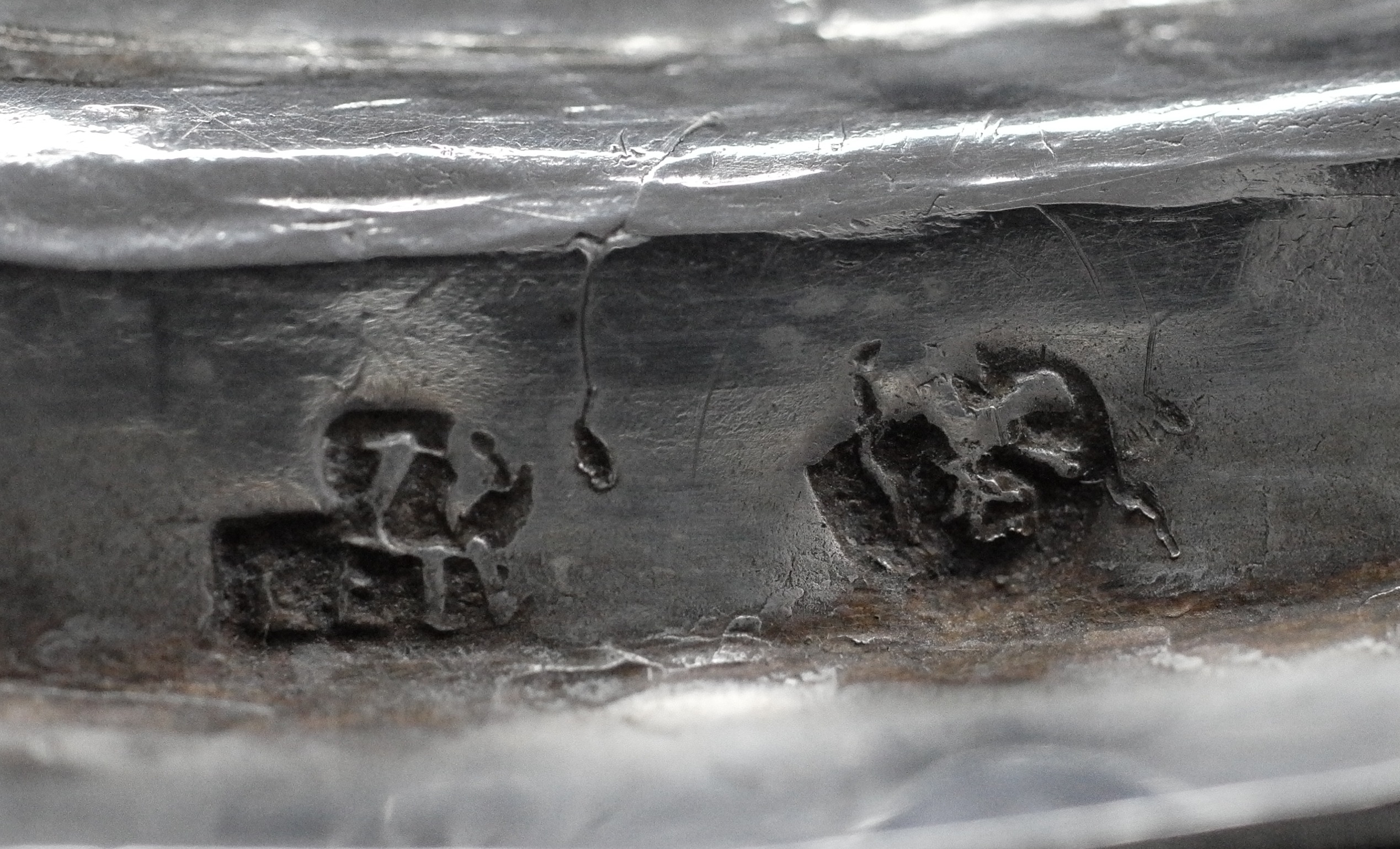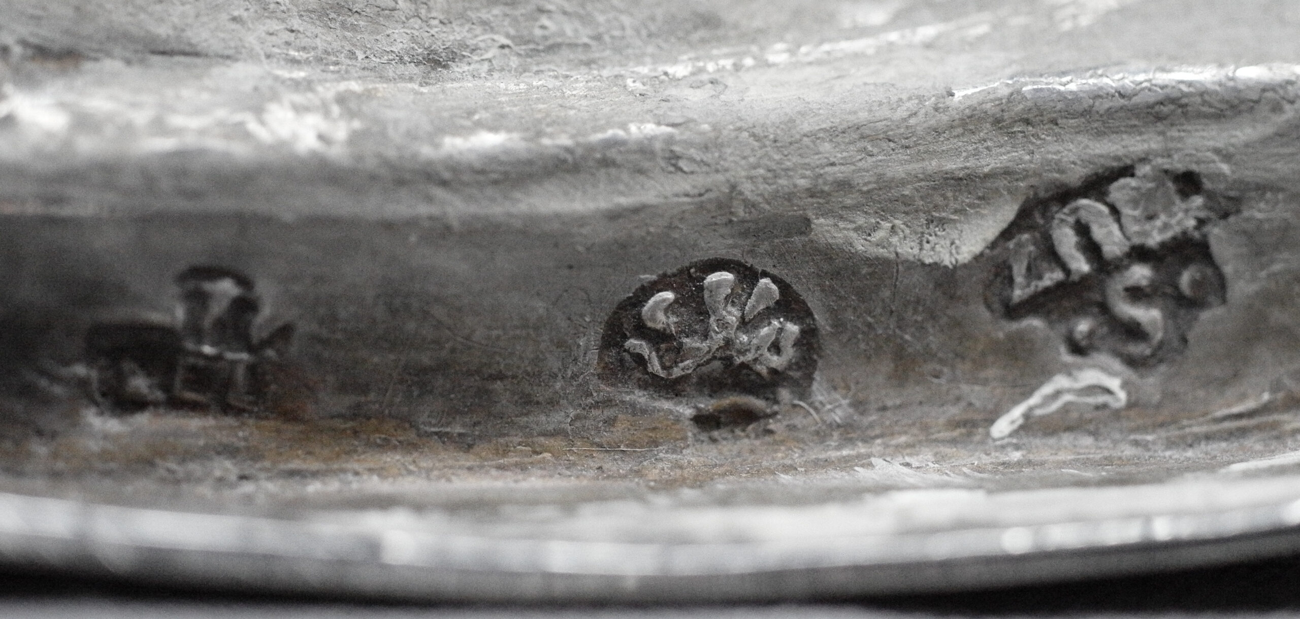 Als Punzen sind zu finden die Beschaumarke von Córdoba/Andalusien sowie die Meistermarke von Antonio Santa Cruz.