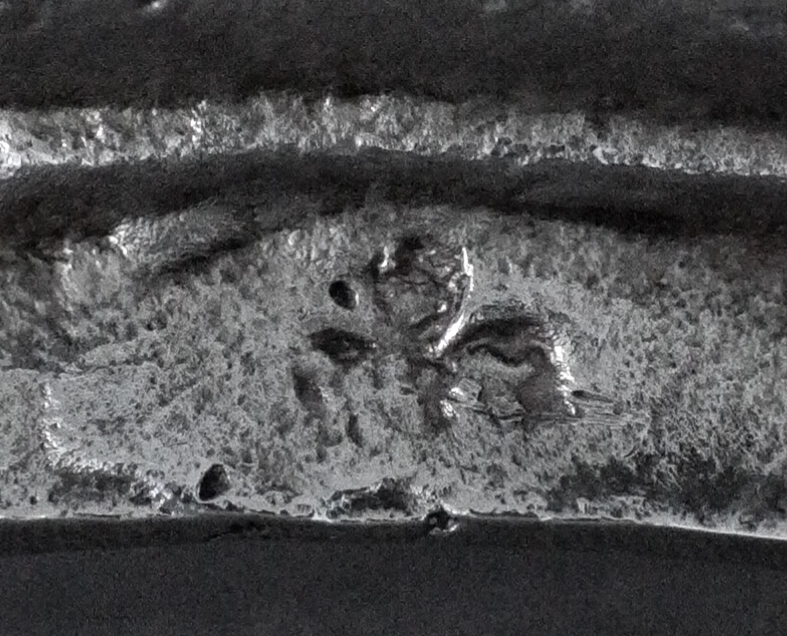 Der Silberschmied ist mit WC für William Cafe, Livery, London, markiert, der gekrönte Leopardenkopf steht für London, der links schreitendee Löwe für Sterlingsilber und der Jahresbuchstabe D für das Jahr 1759.