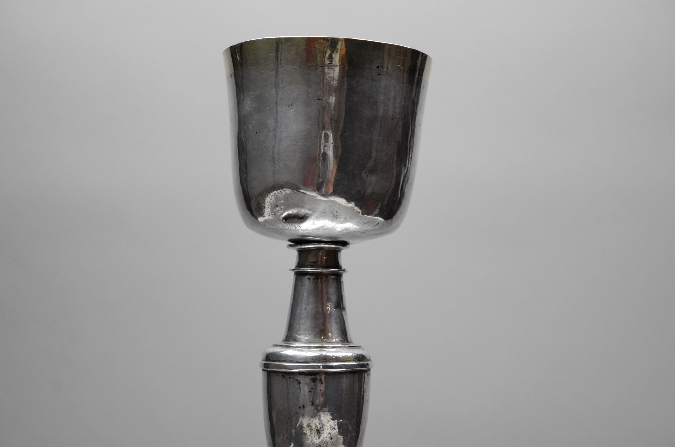 Der Kelch ist in einem dem Alter entsprechenden Zustand mit vereinzelten Dellen und leichtem Schiefstand. Ansonsten verweisen wir gerne auf die eingestellten Fotos.